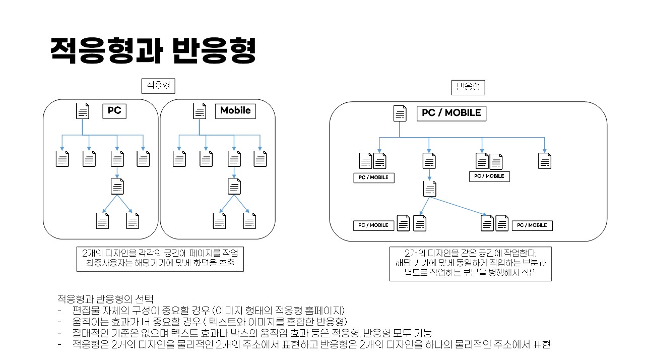 랜딩페이지와 사이트맵 구조의 홈페이지로 크게 구분되며 검색엔진의 노출에 유리한 구조는 사이트맵을 가진 구조의 홈페이지이다.