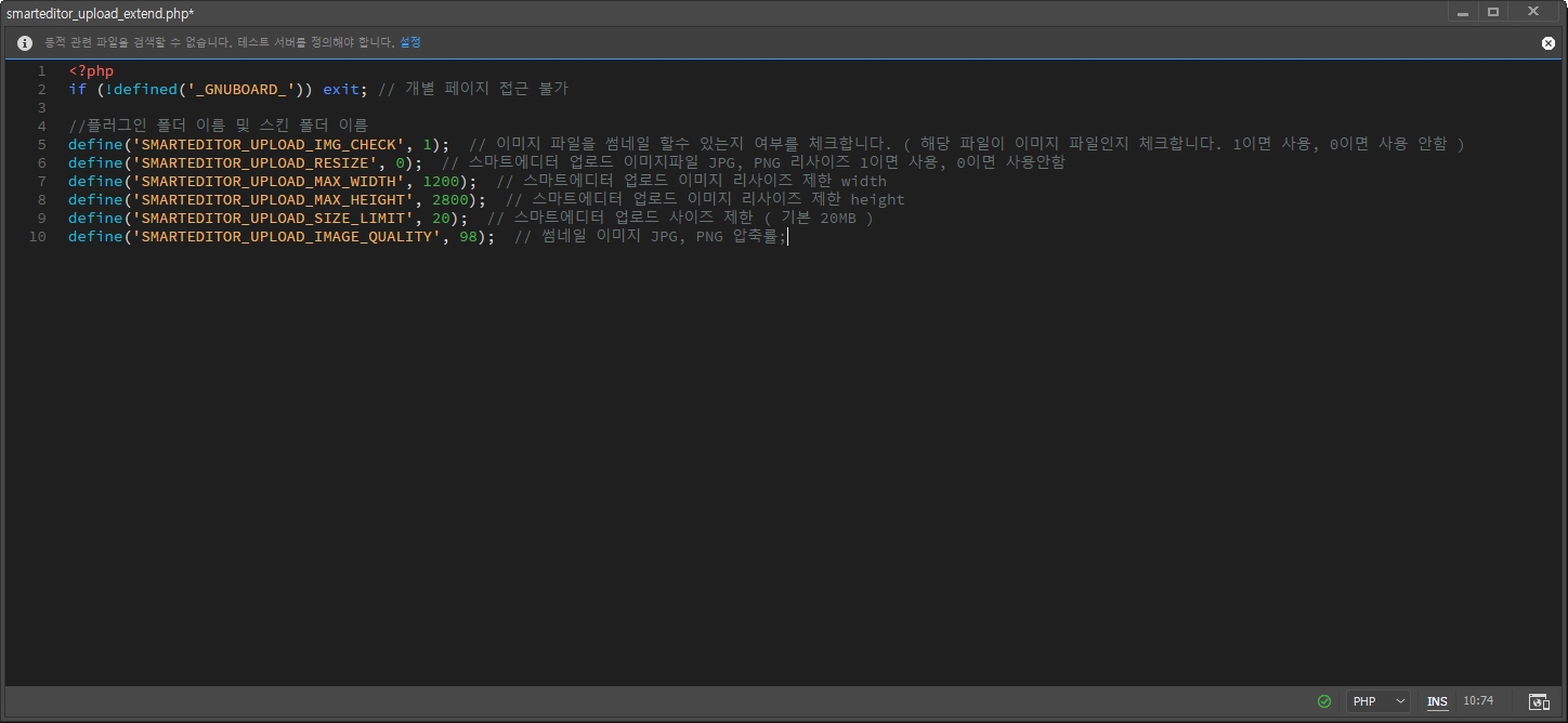 define(‘SMARTEDITOR_UPLOAD_MAX_HEIGHT’, 2800); // 스마트에디터 업로드 이미지 리사이즈 제한 height