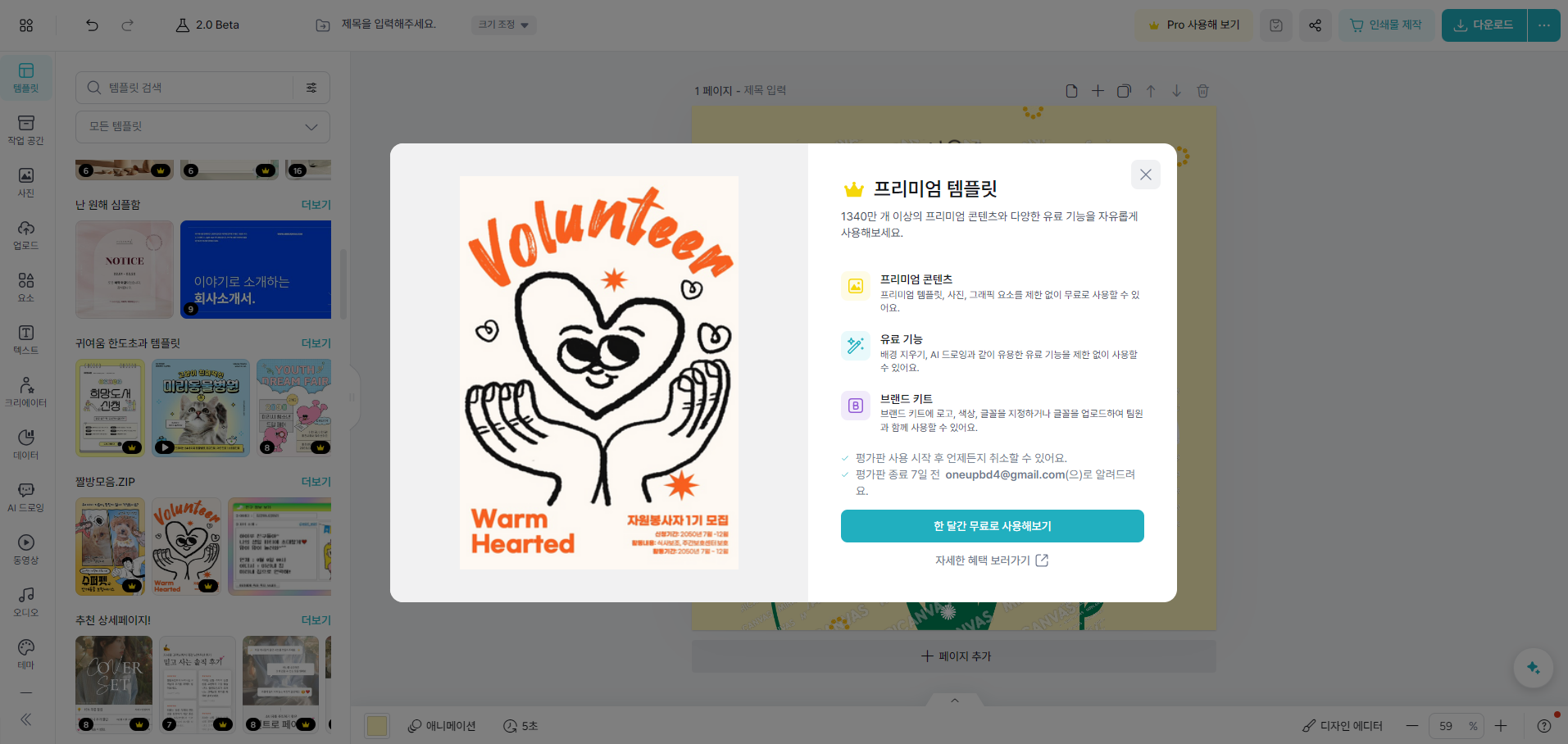 더 많은 기능, 템플릿을 이용하고 싶다면 추가 결제를 해야하는 점도 같습니다.